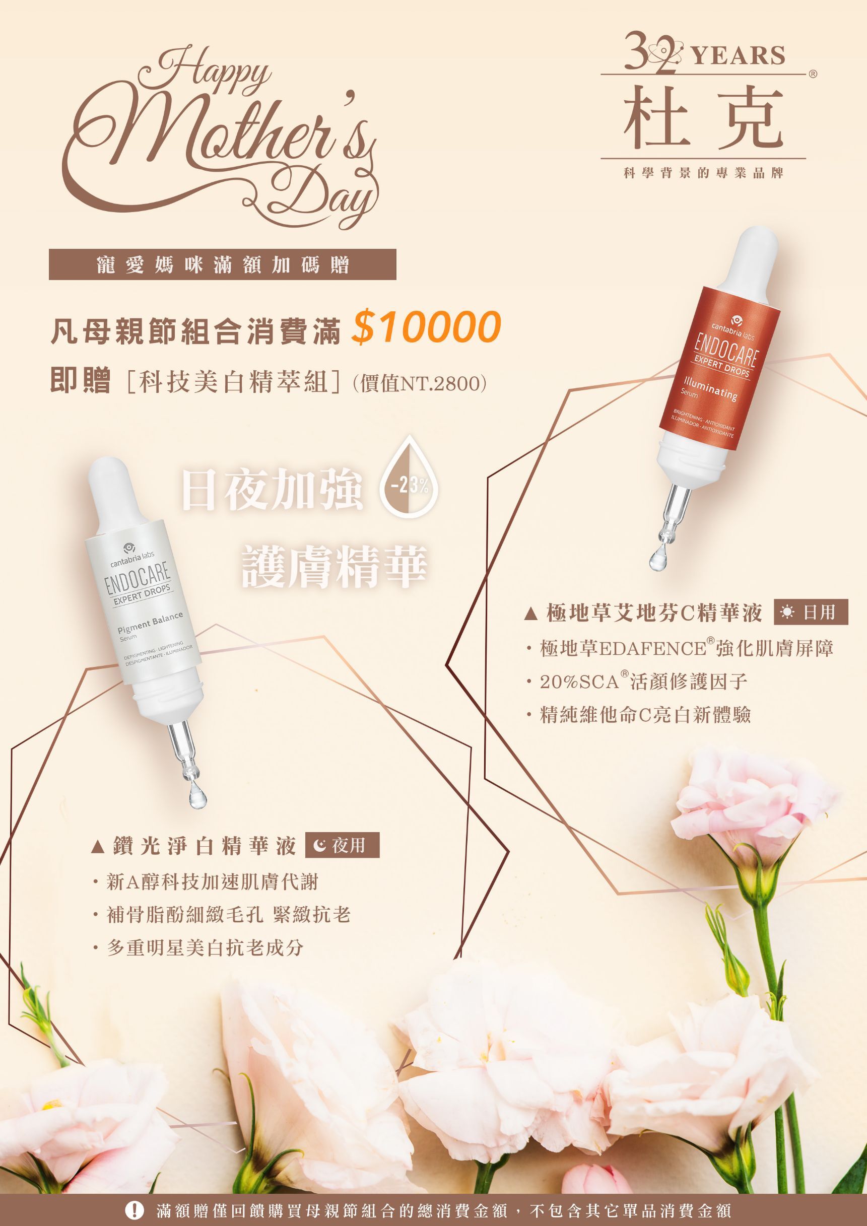 凡母親節組合消費滿$10,000贈送科技美白精萃組價值$2800
